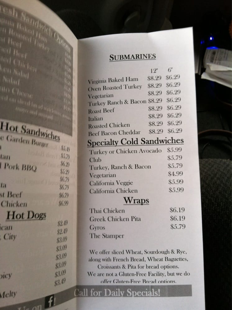 Ham, Salami, Provolone Cheese, Herb Spread, Onions, Red Bell Pepper, Tomatoes, Pepperoncini Peppers, Served On French Bread. Comes in " . or " .